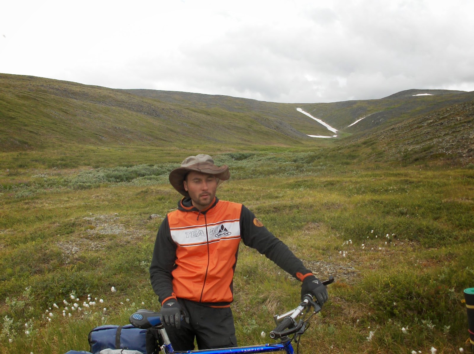 До обеда дорога очень даже хороша. Временами слезаем с велосипедов, чтобы перебраться через неглубокие бродики. Что-то проезжается с ходу. Погода была бы отменной, если бы не холодный северный ветер. Дует он, конечно, в морду и страшно мешает. Мешает нам, но не комарам. Их много, у них праздник – туристы приехали. Одним ударом убиваешь штук 10 – 15.