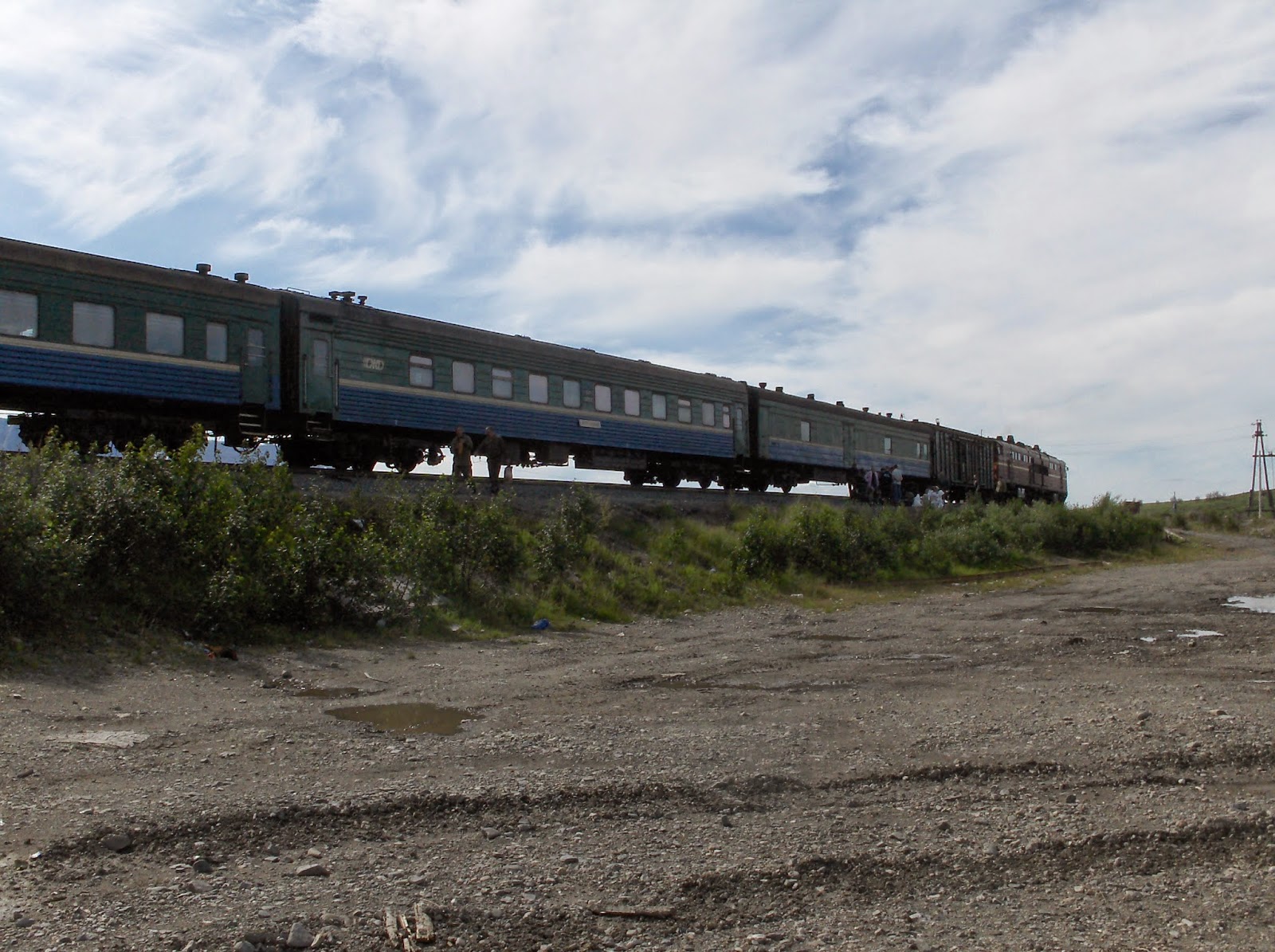 Природа за окном скуднеет. Тундра, болота. Железнодорожная насыпь жутко виляет и кренится, пытаясь сбросить поезд, но он держится, намертво вцепившись в рельсы. Ближе к обеду турье начало активно покидать состав. Вот и 110 км., откуда мы должны завтра (я надеюсь) начать маршрут.