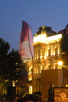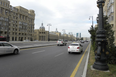 Сам Баку, как водится, оставляю на сладкое, но еду через весь город насквозь, не закрывать же глаза. В сознании отложилось – чудеса строительного хай-тэка, заставляющие подтянуть лямочку на каске, чтобы челюсть не обронить; “качалки”, сосущие нефть прям в городском парке  и, контрастом, неожиданно высокие цены на бензин; безупречная чистота улиц.
