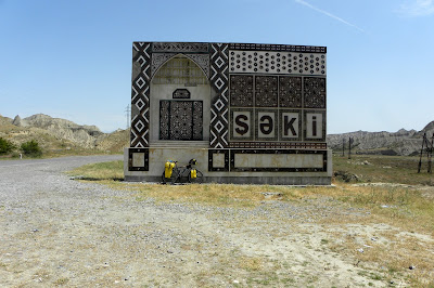 Видимо, не желая расстраивать гостя, мне рассказали, что после Шеки дорога все время идет вниз, но первые два часа я честно ломил в горку. Только после Огуза покатил вниз с хорошим уклоном. К полудню небо затянуло, и ехать стало совсем приятно, даже дождик накрапывал периодически. Но перед Габалой дорогу потащило вверх, вышло светило, температура поднялась до 30. От Шеки фактически началась условно вторая часть путешествия, я развернулся в направлении Баку и следующие дни буду держаться дороги R9.