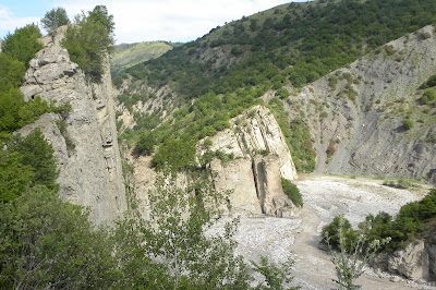 Спуск из Лагича стал ожидаемо легким и быстрым. Еще раз любуюсь видами каньона, уже не отвлекаясь на одышку и утирание заливающего глаза пота. Но надежда, что весь день проведу в седле, педали не крутя, разбилась об очередную гряду. А сегодня еще и погода стремится к совершенству. Ни облачка, воздух не шевелится, тени нет, умыться негде.