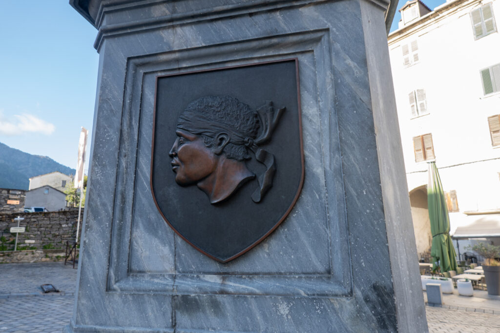 И еще, куда ни плюнь – везде символ Корсики “Голова мавра”. Ну, прям, Ильич и красный стяг.